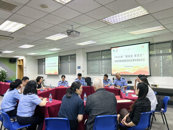 会上,中新教育党支部书记田雪鸰致欢迎词,她表示“法制安全、信息安全和意识形态安全都是国际学校高度关注的关键领域和重要点位,希望通过党建结对共建的形式,与各领导部门深入交流合作,以党建促业务,聚合力强法治”。随后,总校长谈及国际学校近几年法治安全工作,与会各方在学校安全教育、法律意识培养等方面交换意见。